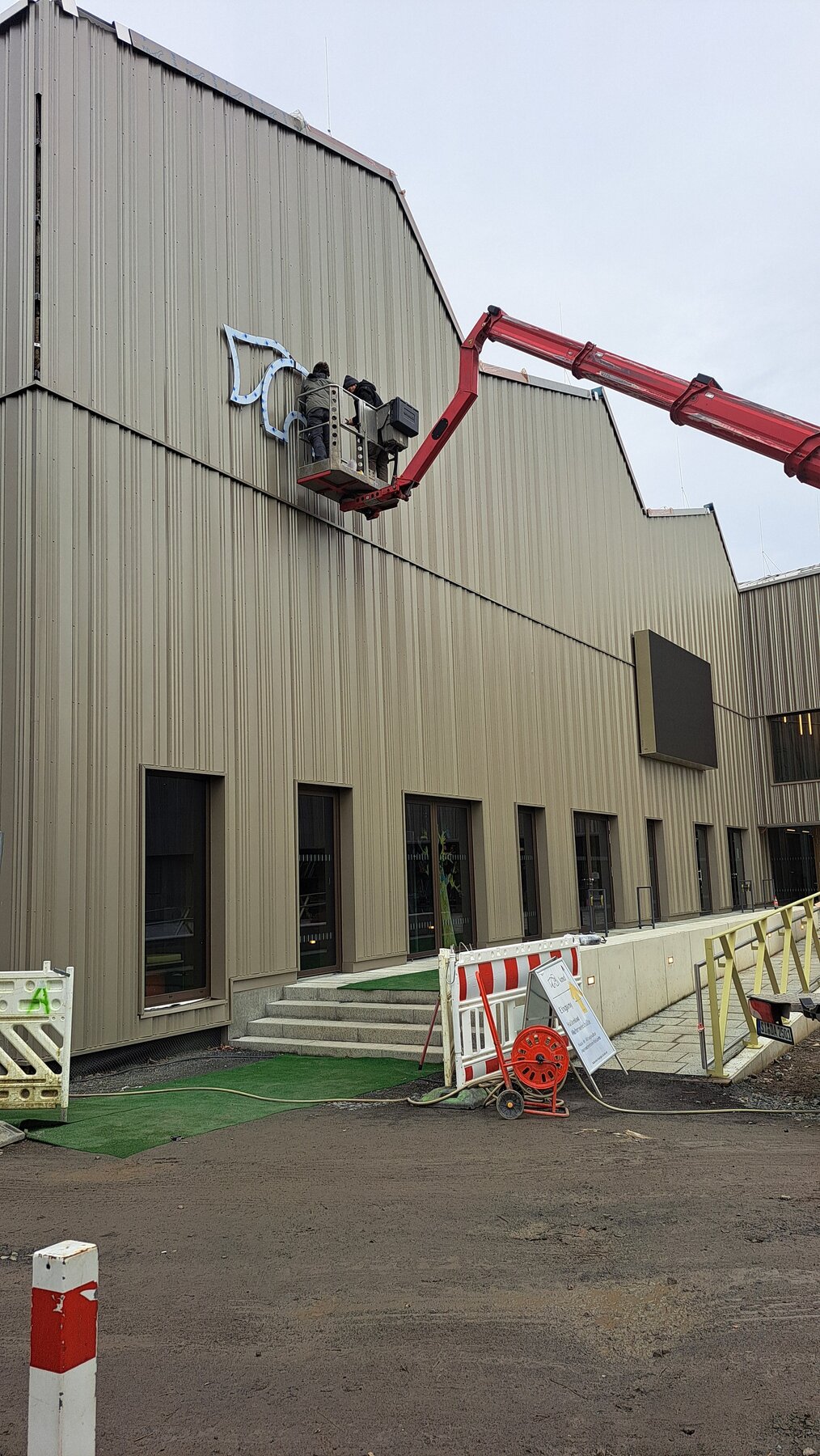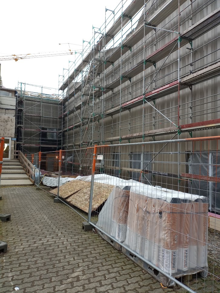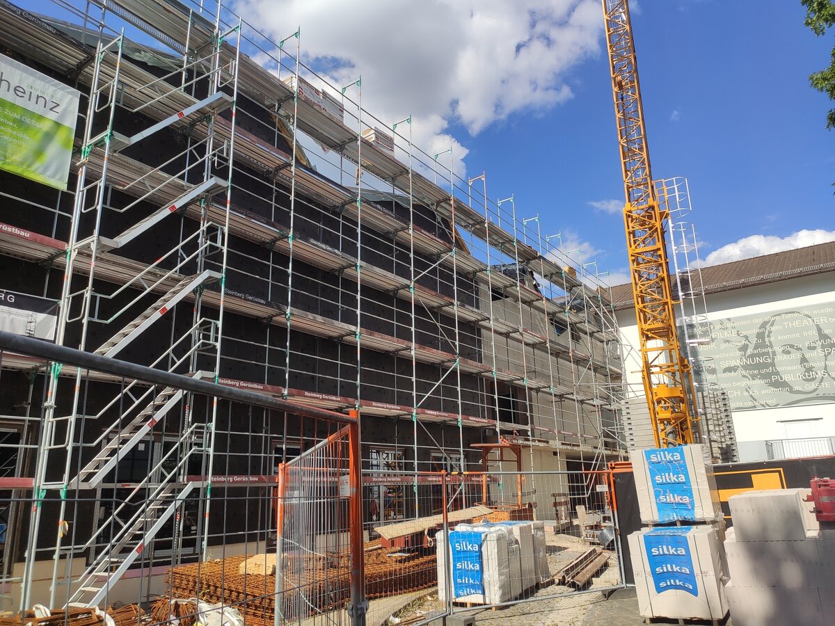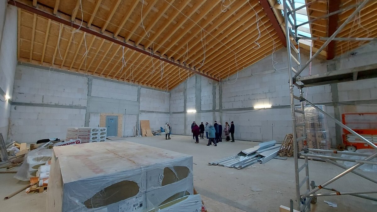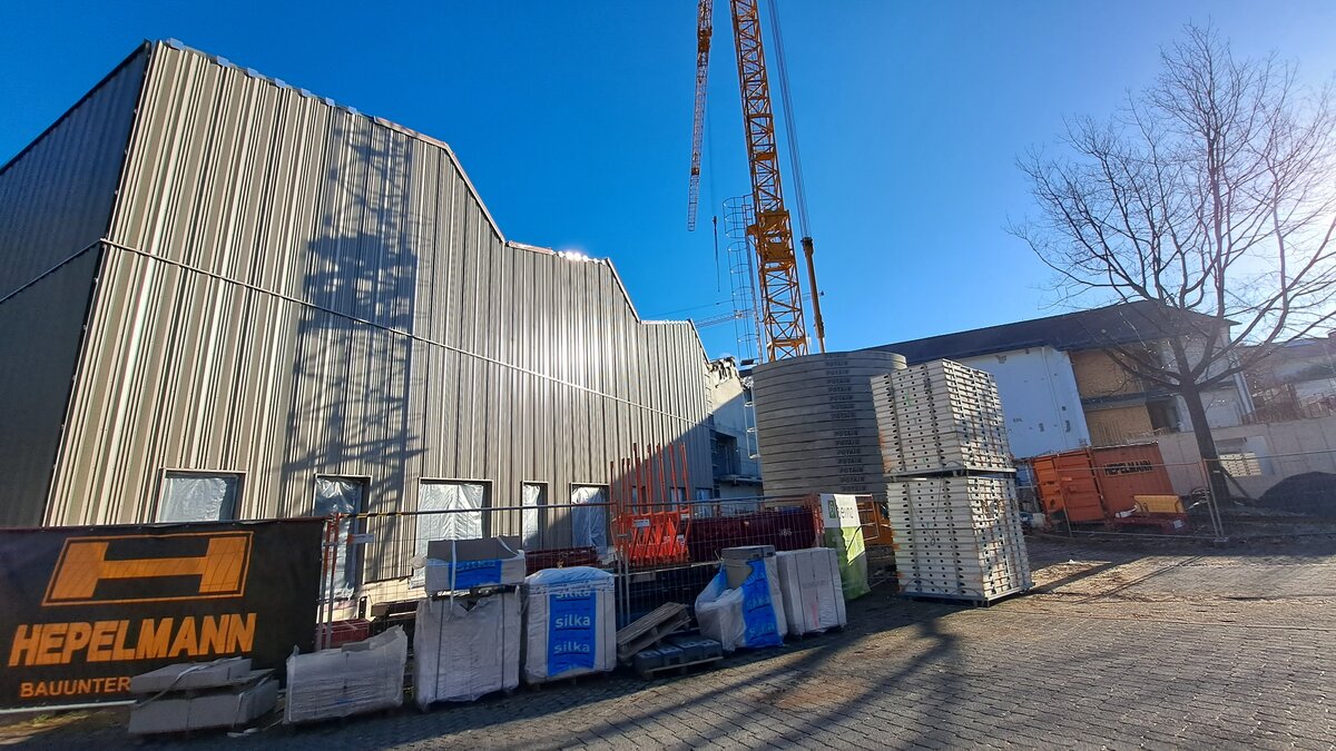 - Der Dachstuhl ist gerichtet. Im April findet ein kleines Richtfest in der Mehrzweckhalle statt.