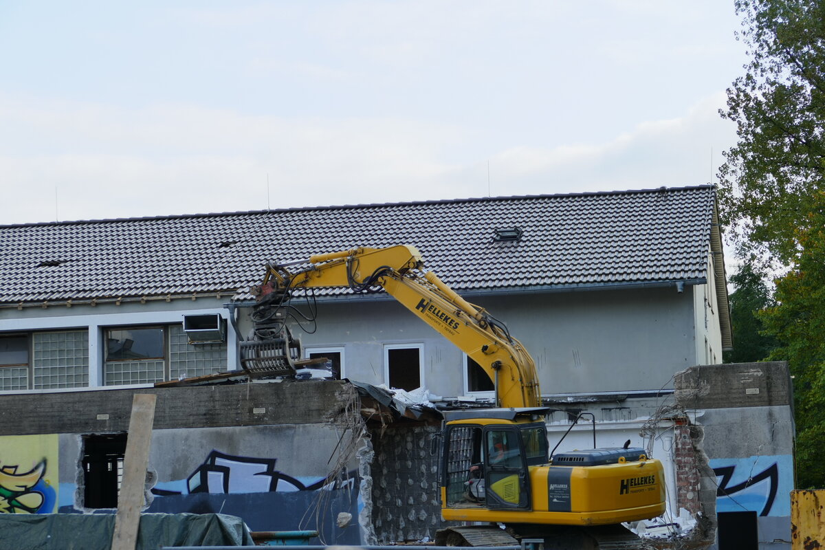 - Die Abbrucharbeiten an der Turnhalle beginnen und läuten den Baustart ein.
